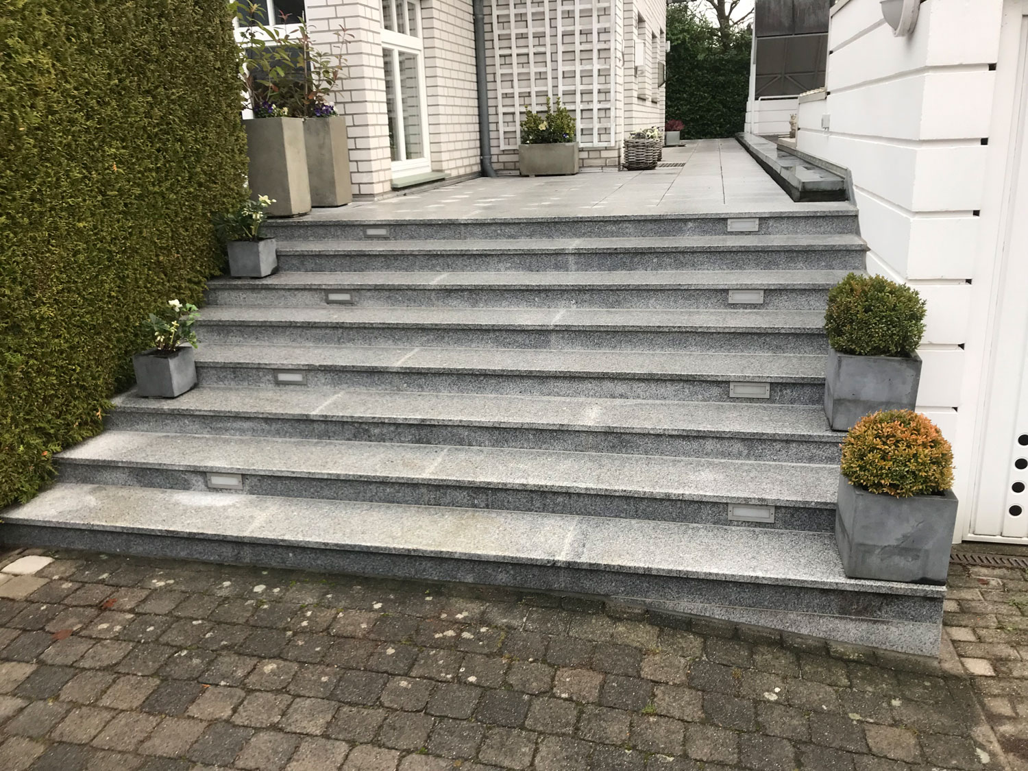 Als moderner Meisterbetrieb mit hohem Anspruch an Qualität und Innovation zählen wir kreative Treppenlösungen mit Granit zu unserem Leistungsspektrum . Wir liefern und verlegen die Treppenstufen sowohl für den Innen- als auch für den Außenbereich. Neben fachlicher Qualifikation und Erfahrung bieten wir Ihnen einen individuellen und zeitnahen Kundenservice. Gerne können Sie sich in unserer Ausstellung in Münster einen persönlichen Eindruck von der Hochwertigkeit sowie der ansprechenden Optik von Granittreppen machen.